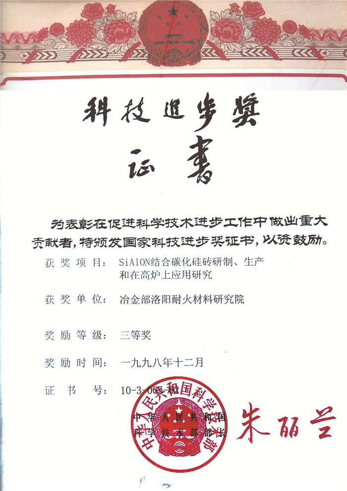 科技進(jìn)步獎證書